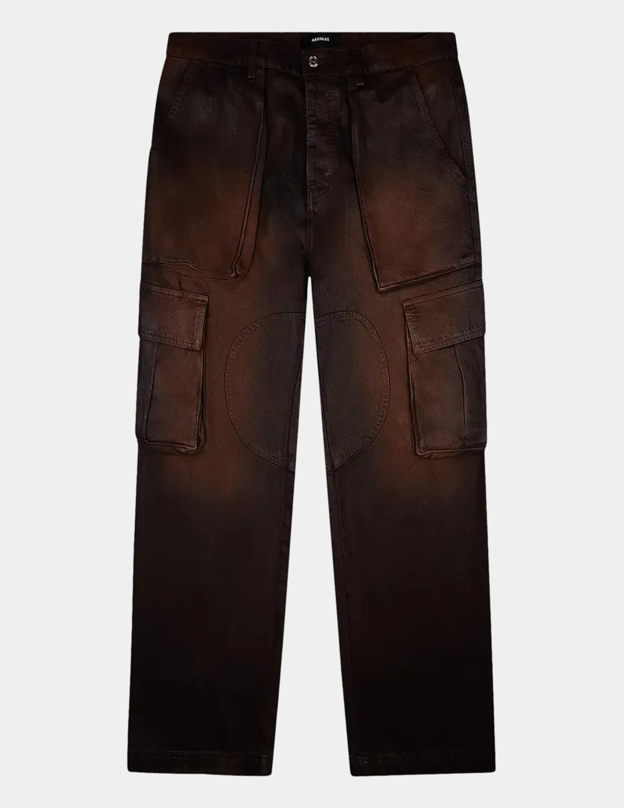 Nahmias Waxed Denim Logo Cargo Pant Brown Wash