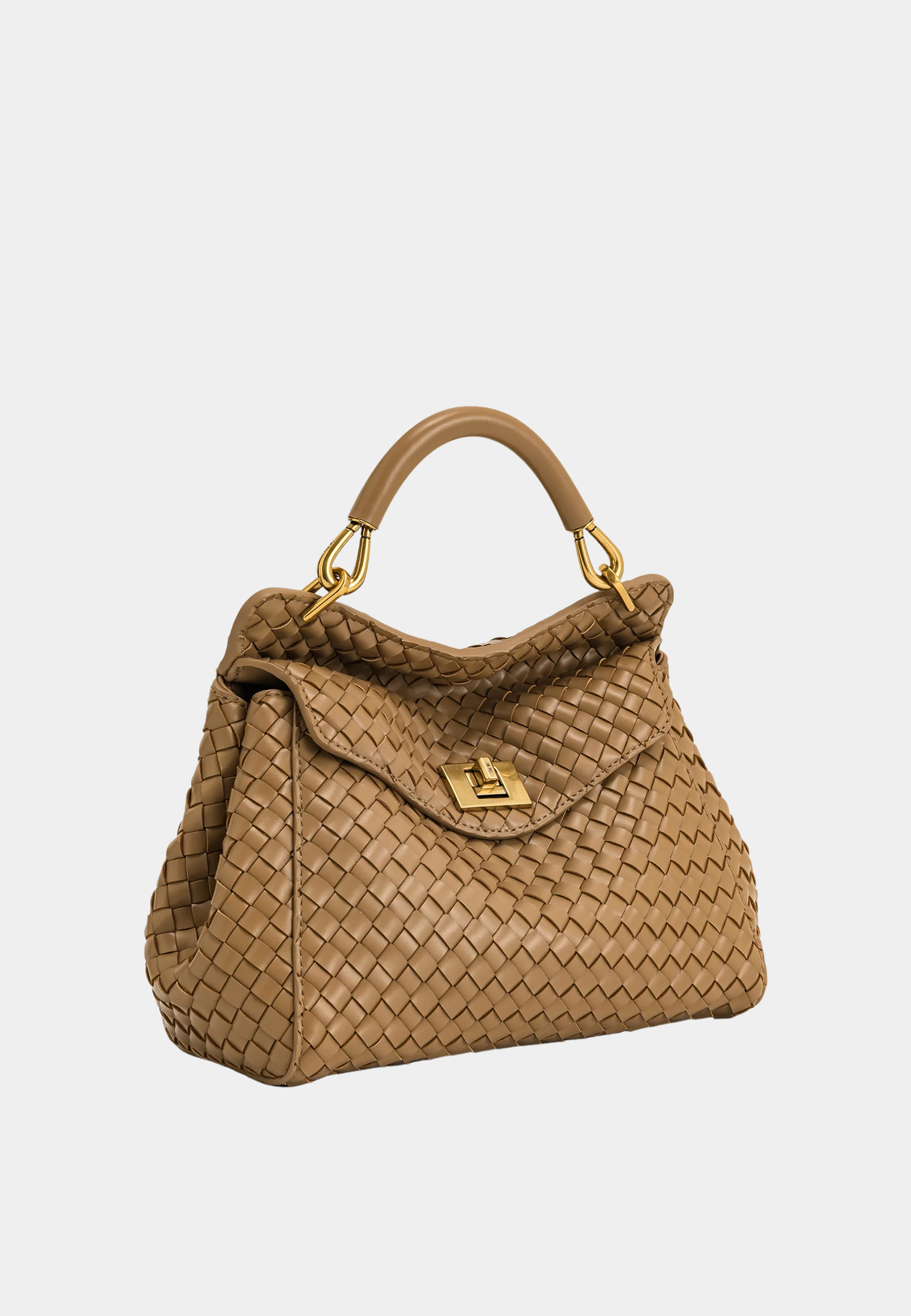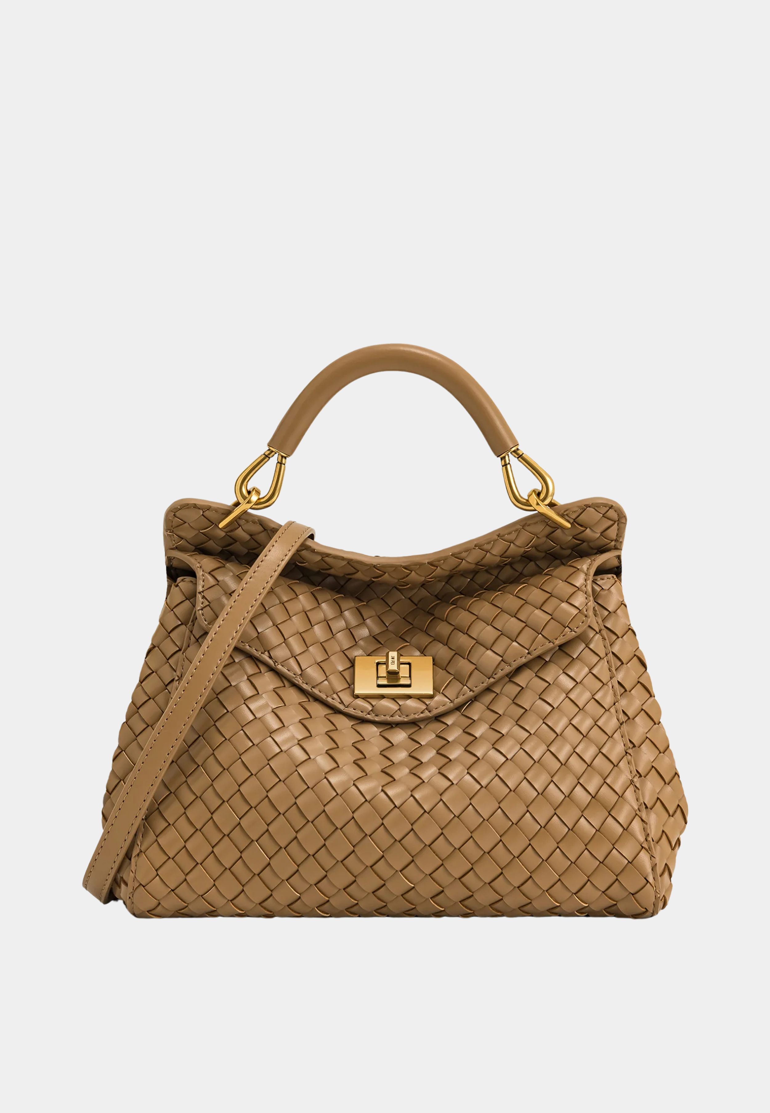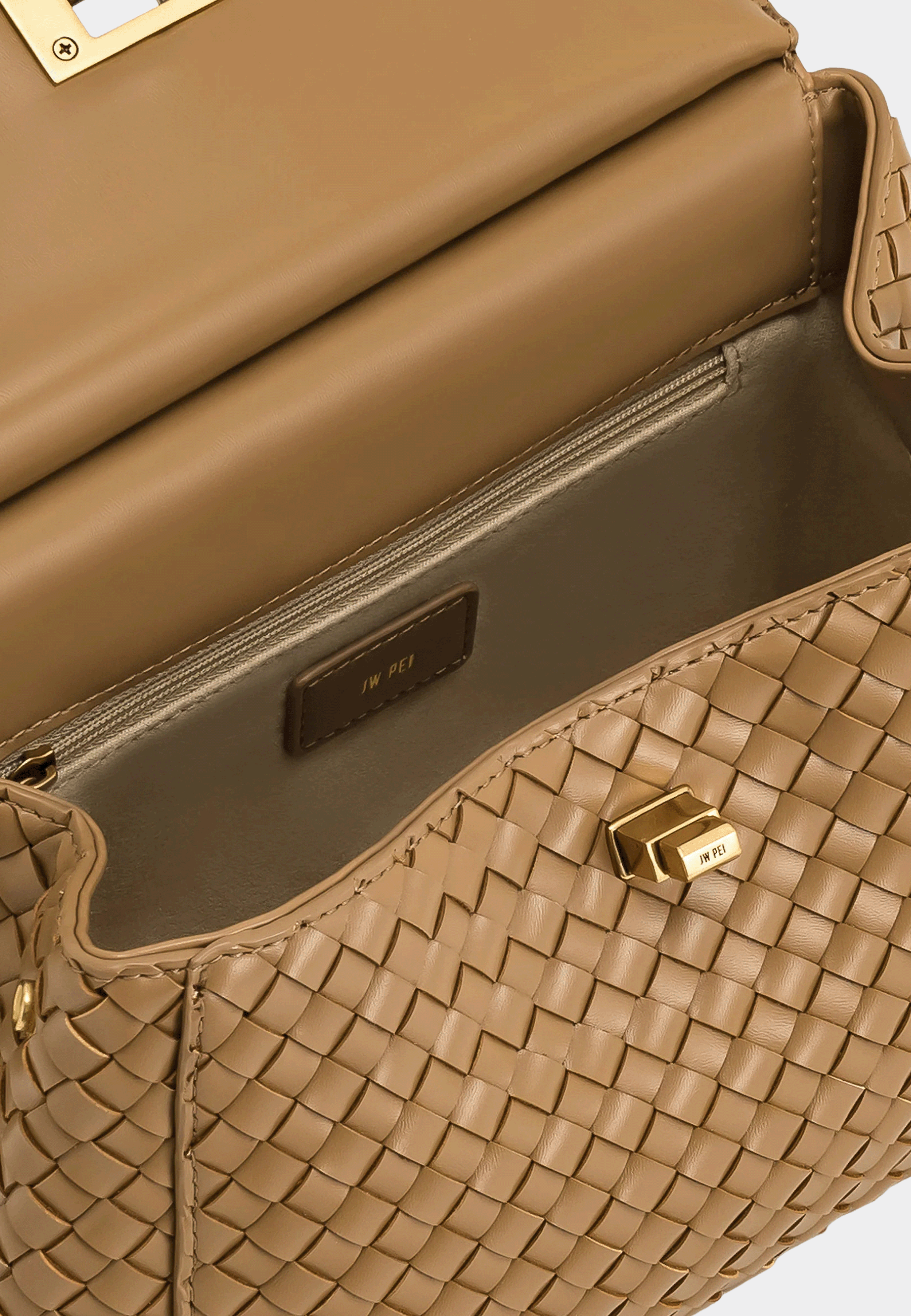 JW Pei Lucia Classic Top Handle Woven Bag Brown