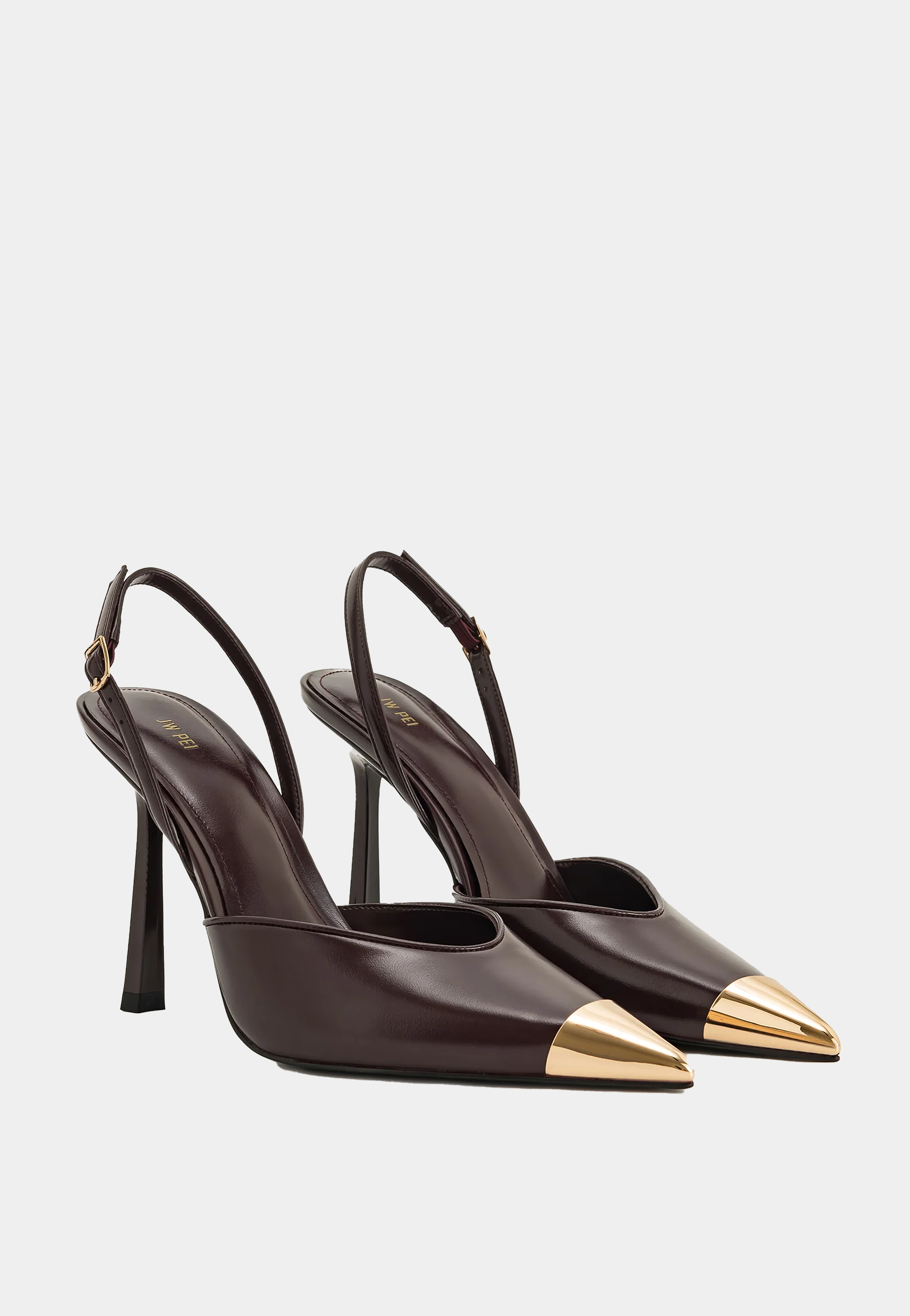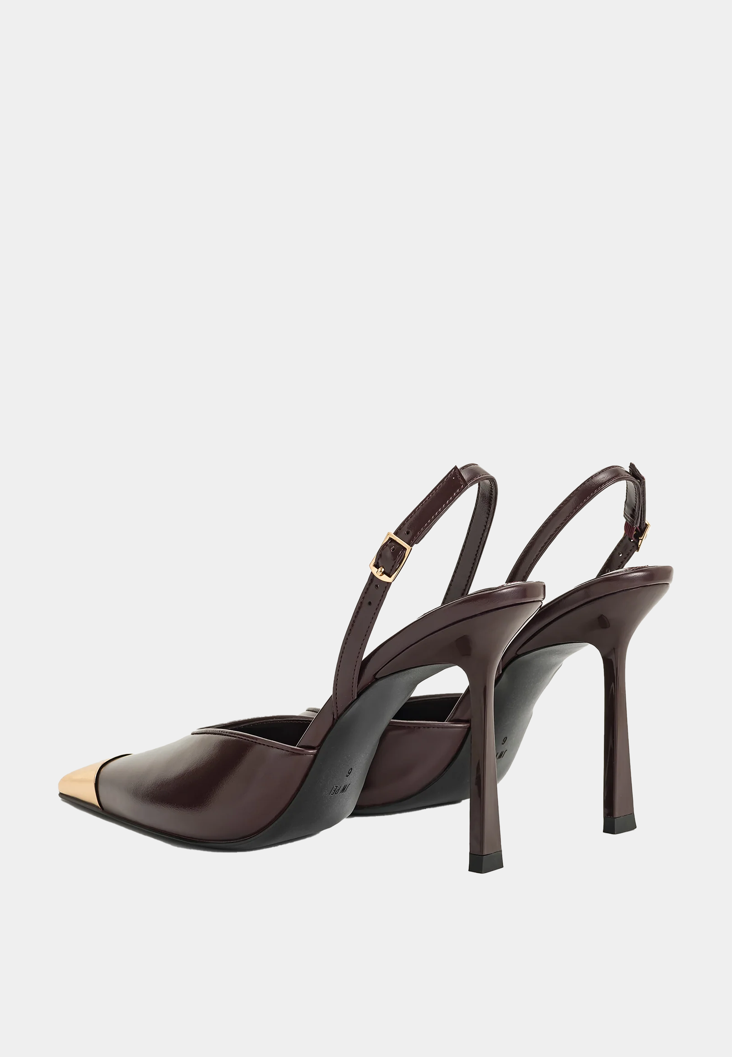 JW Pei Savannah Gold Tipped Slingback Pumps Burgundy