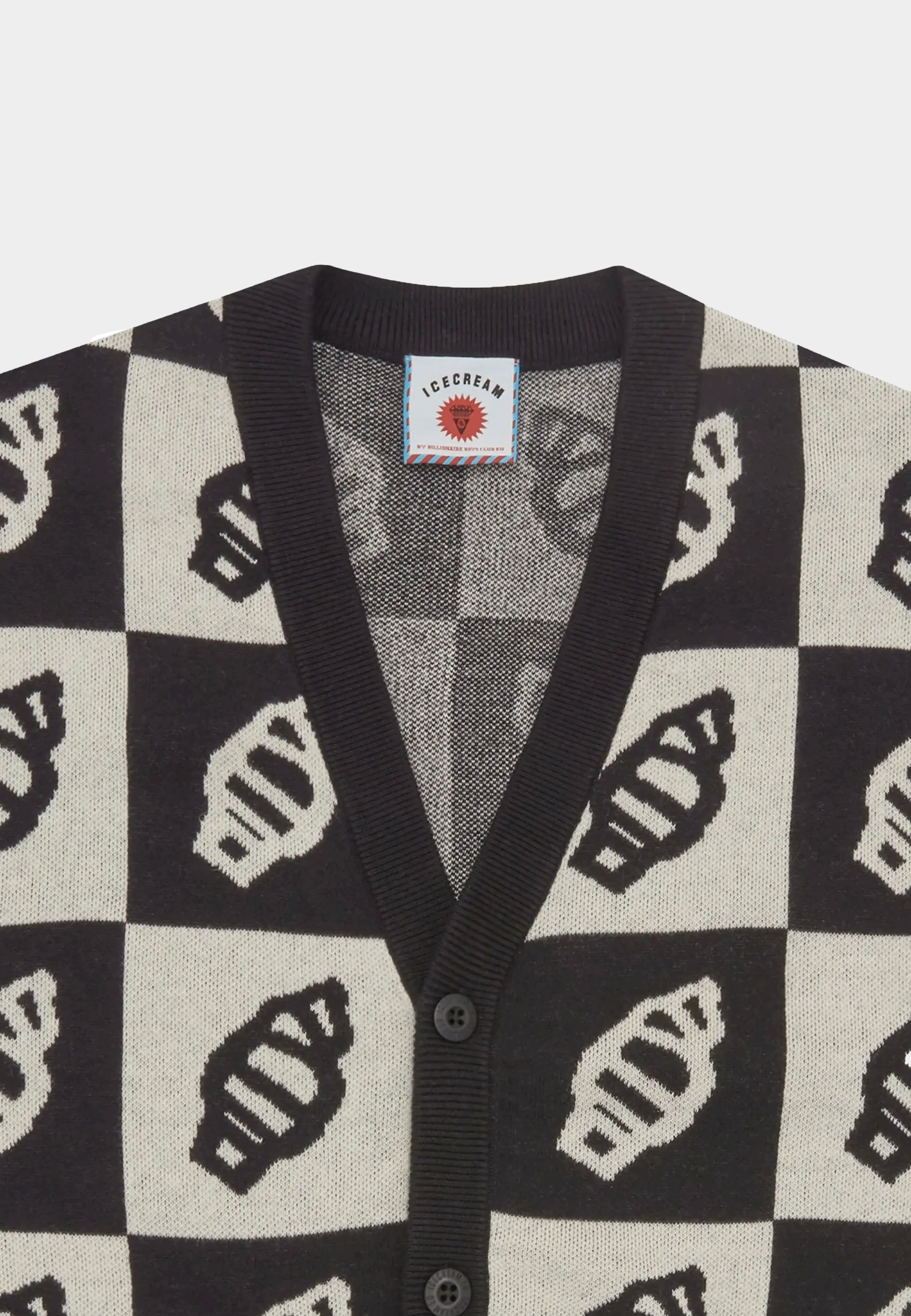 The cardigan that makes pattern the entire point. Billionaire Boys Club, founded in 2003, brings the same graphic intelligence to its knitwear as it does to its most coveted graphic pieces. The Checkerboard Cardigan Black is 80% cotton, 20% wool with an all-over checkerboard ICECREAM jacquard pattern across the full garment, two front pockets, and branded buttons that carry the ICECREAM identity through every detail. Available now at Ashluxury, a high-end fashion store carrying the full Billionaire Boys Club range. Wear open over a plain white tee and straight-leg trousers or closed as a standalone piece.