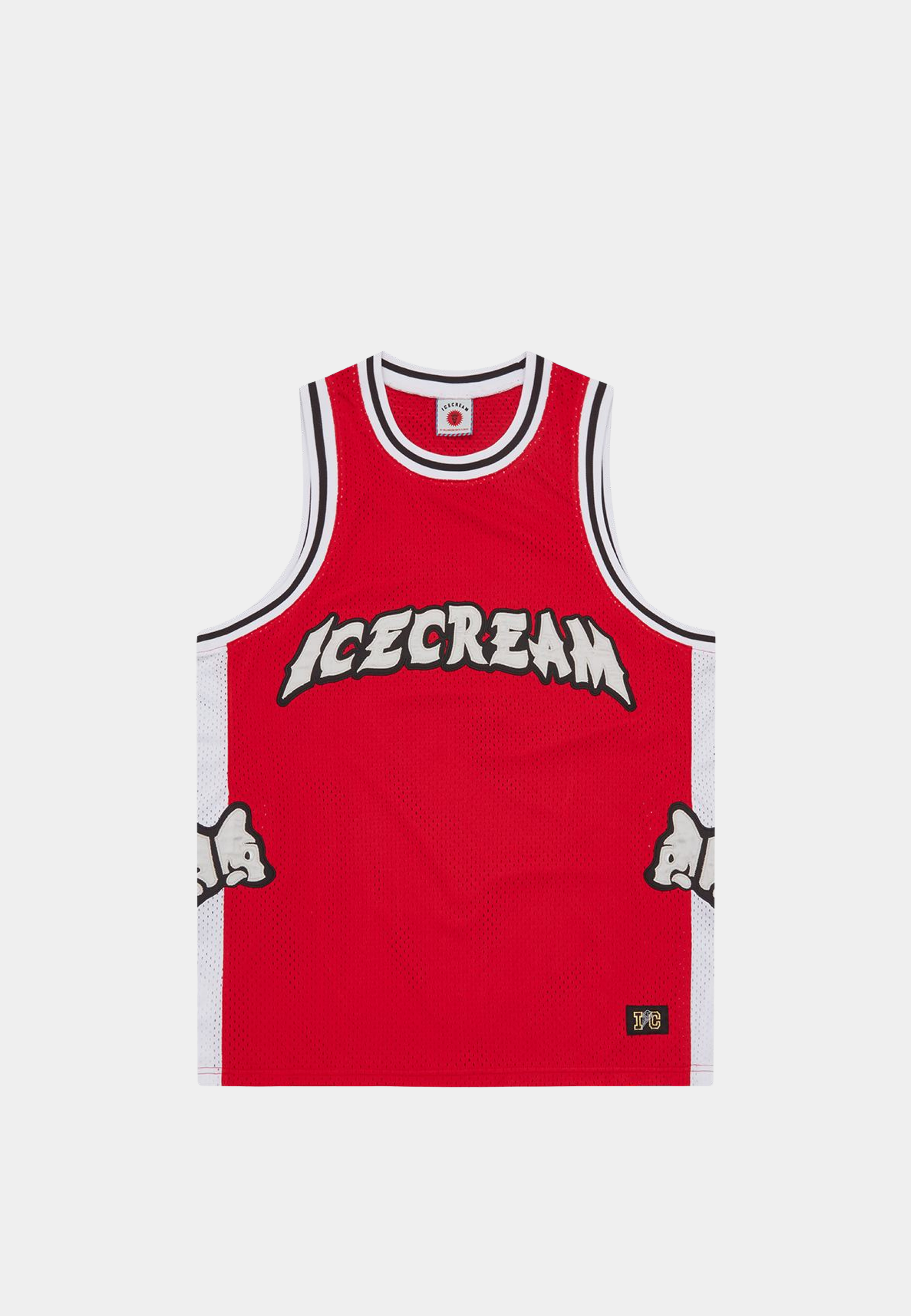 The vest that carries the Billionaire Boys Club graphic identity into the sportswear category without compromise. Billionaire Boys Club, founded in 2003, has built the Running Puppy into one of the most recognisable motifs across the entire ICECREAM catalogue. The Running Puppy Applique Basketball Vest Red is 100% polyester sports mesh, lightweight and perforated, with the Running Puppy appliqué at the front, contrasting hems, and knitted stripe tape detailing at the neckline and armholes. Available now at Ashluxury, a destination for luxury fashion online shopping carrying the full Billionaire Boys Club range. Wear with the matching Running Puppy Basketball Shorts for a full set or pair with straight-leg cargo trousers.