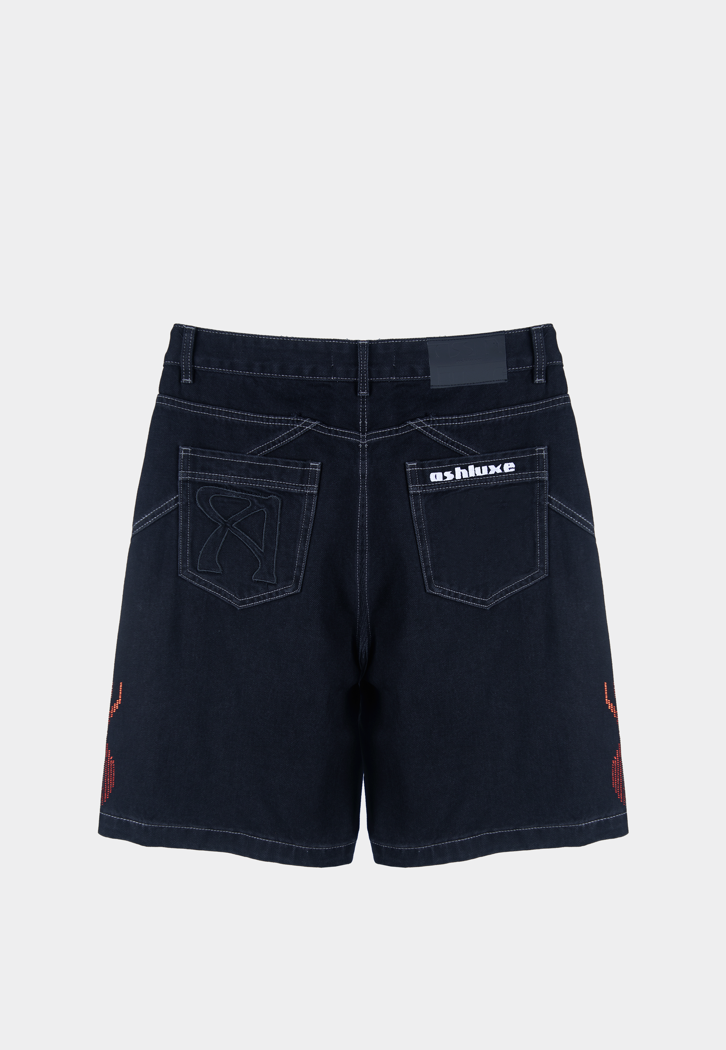 The Ashluxe Flame Denim Shorts in Black reinterpret streetwear through artistry and form. Crafted from midweight stretch denim, they merge comfort with structure a symbol of bold individuality. The signature flame gradient artwork rises from the hem in deep black fade, creating movement and depth while maintaining Ashluxe's distinct visual language.