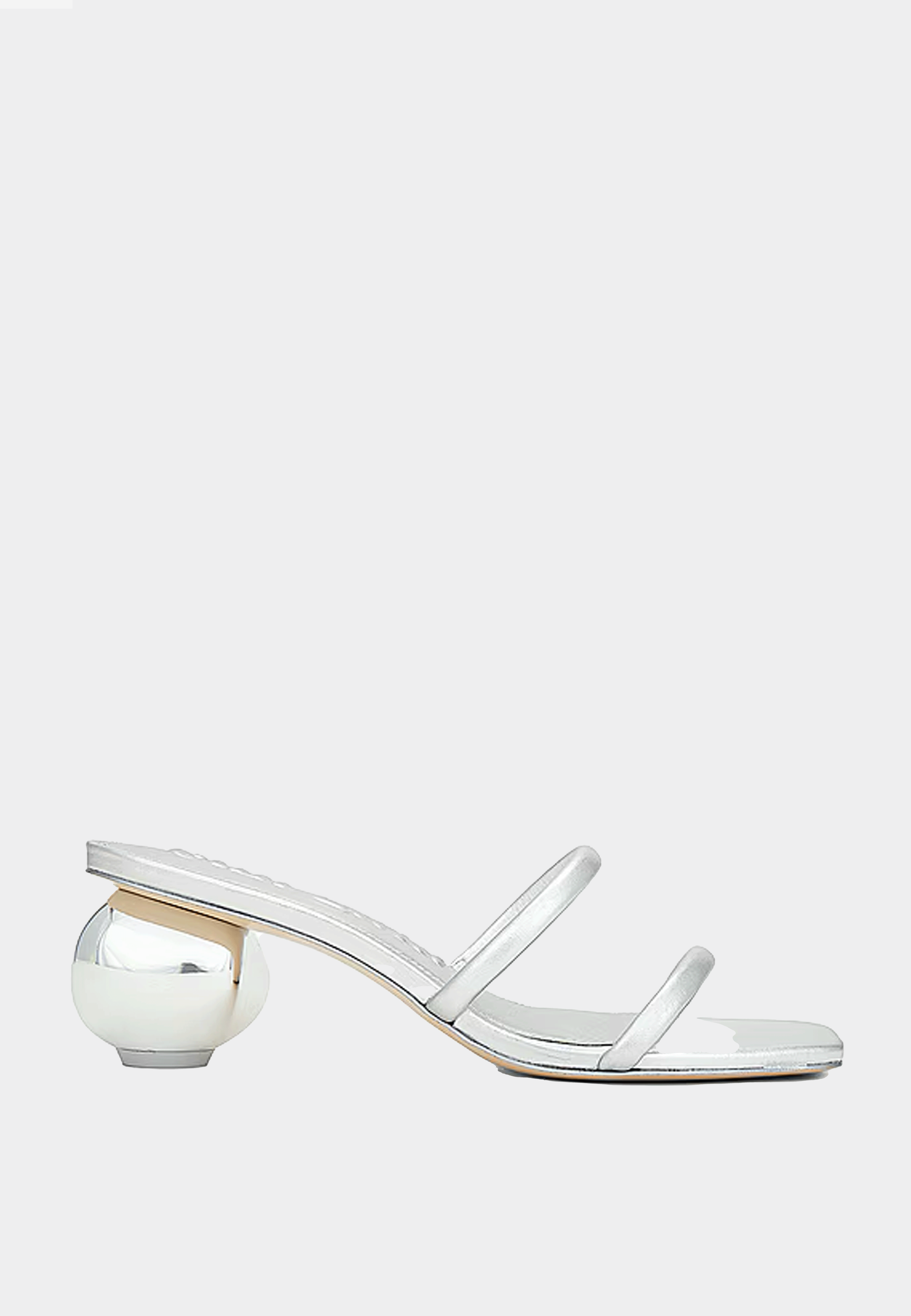 Heel: A distinctive 57mm sculptural spherical heel adds an avant-garde touch, enhancing the sandal's unique aesthetic.