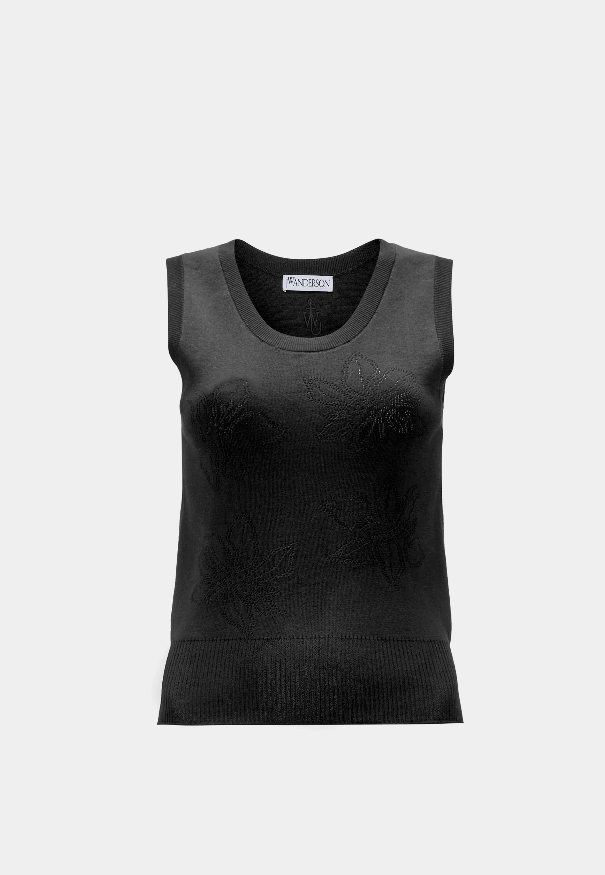 JW Anderson Flower Pointelle Tank Top Black