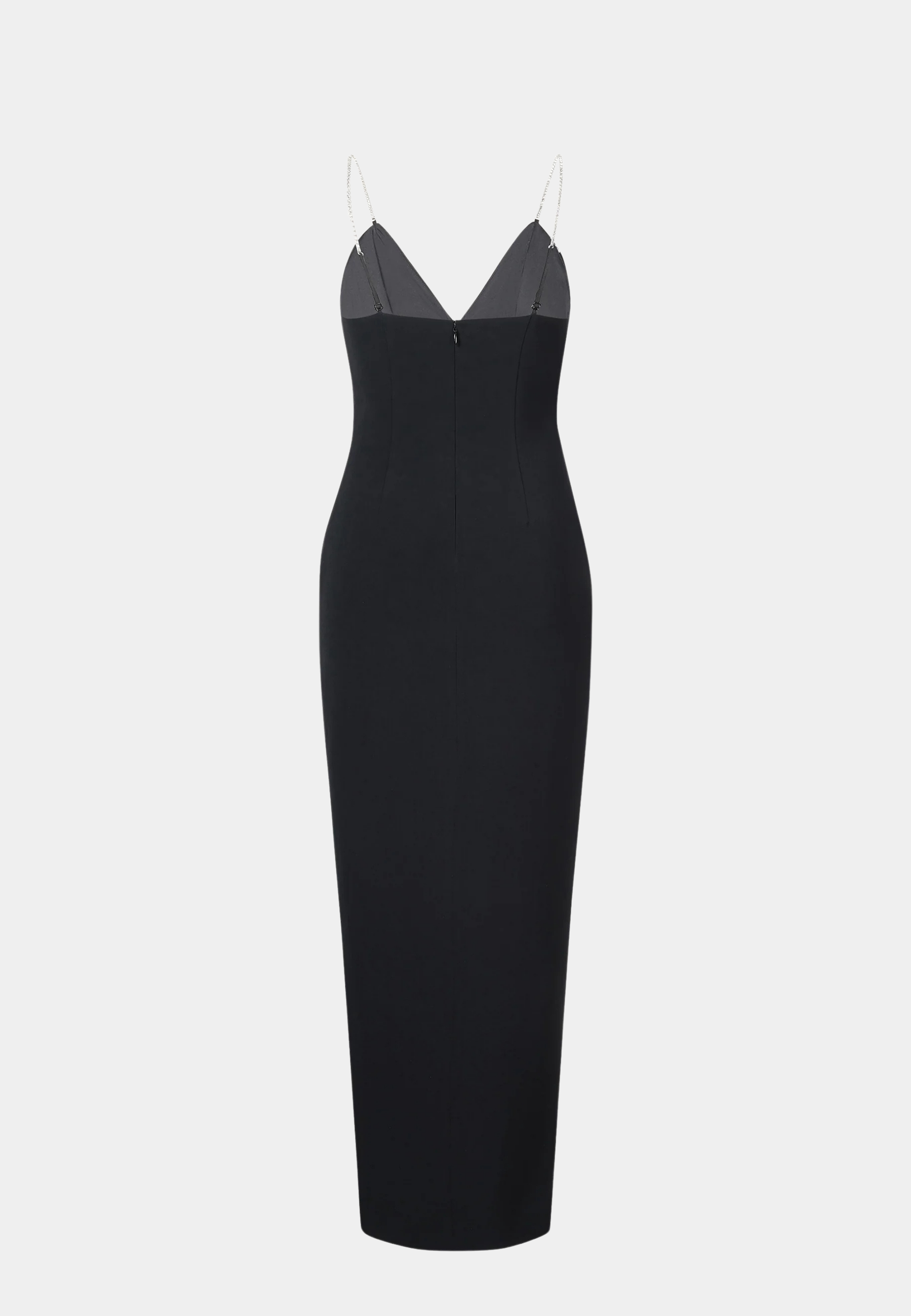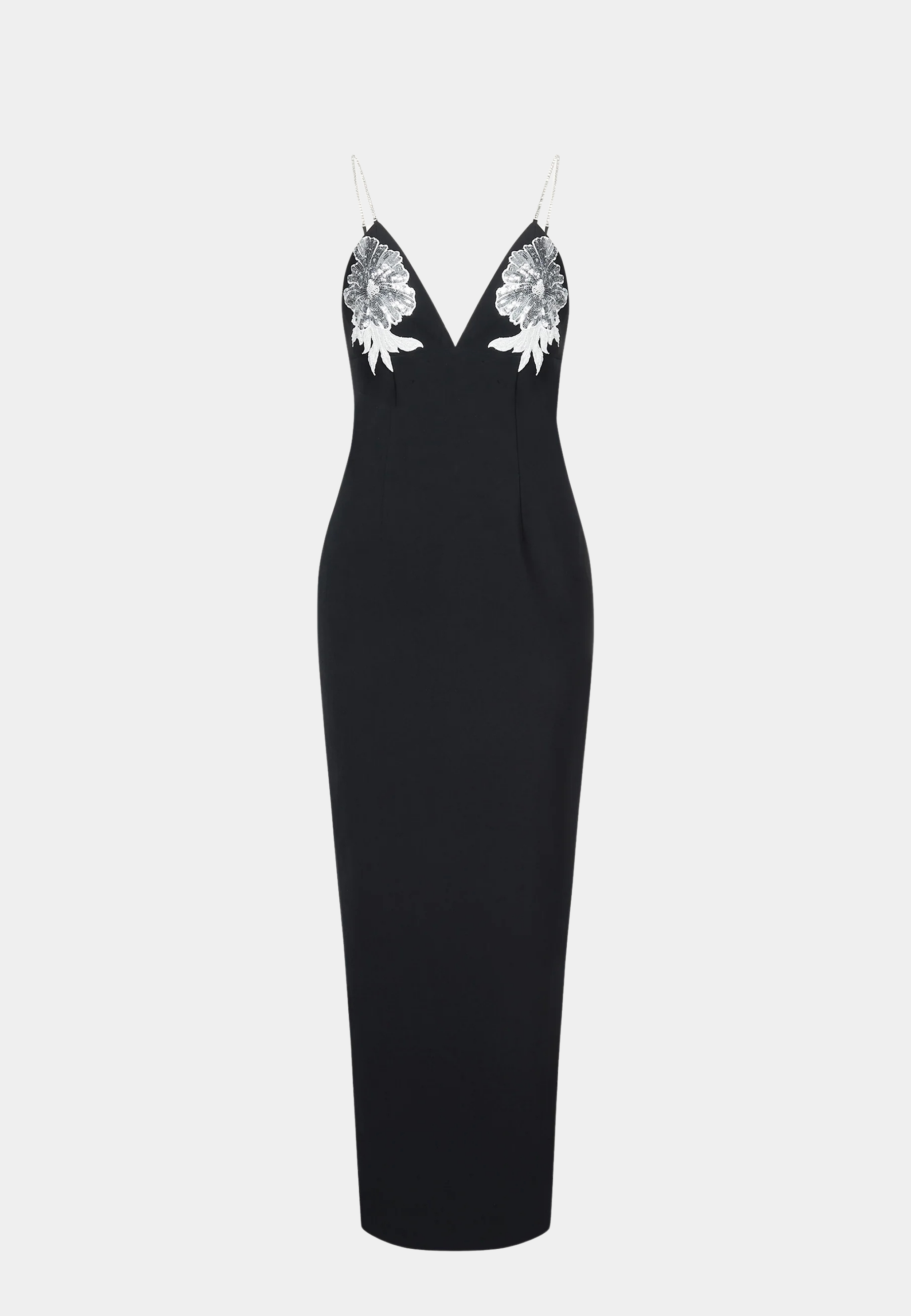 JW Pei Ayliua Sweetheart Neckline Rhinestones Embellished Long Dress Black