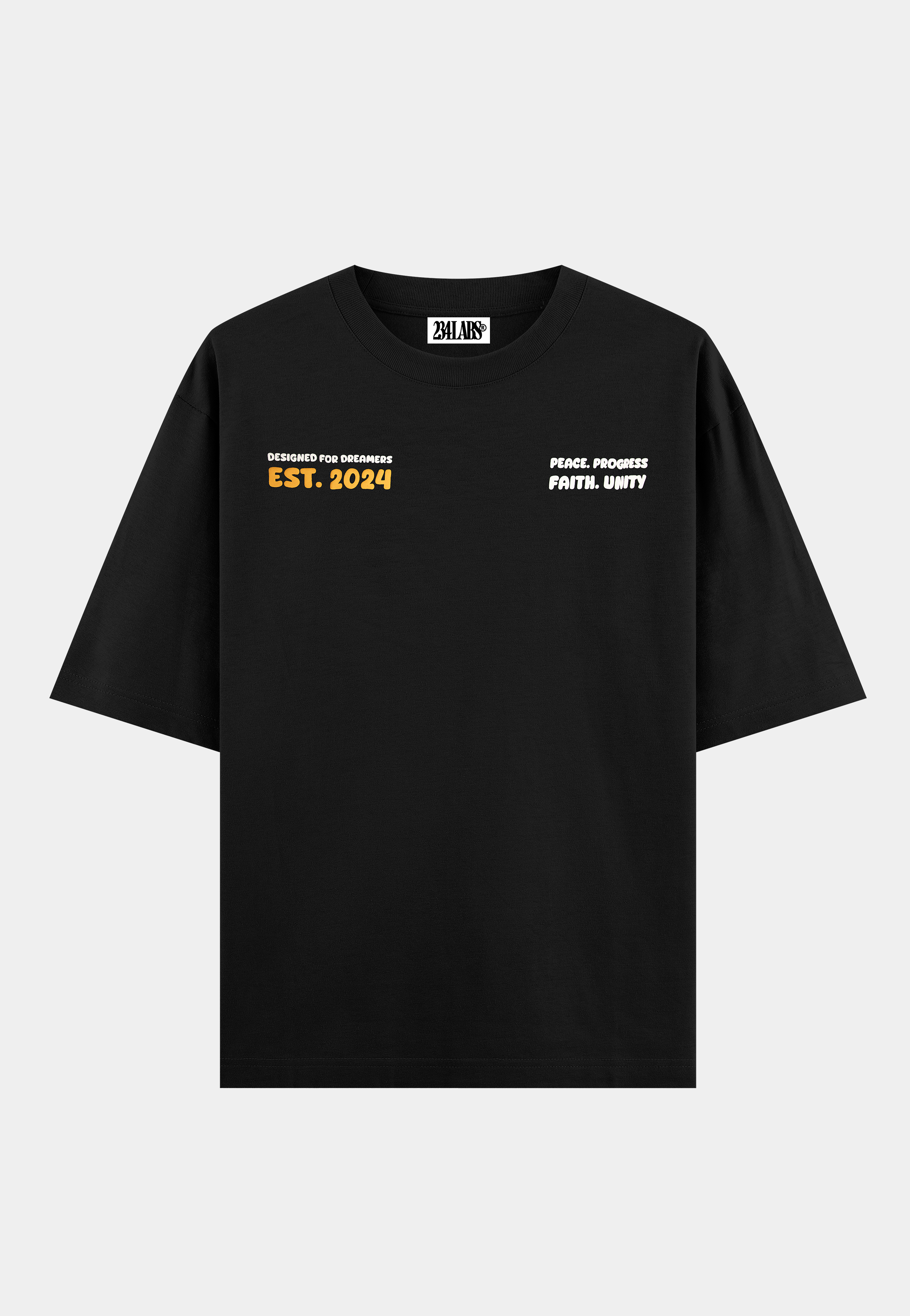 This 234 Labs t-shirt features bold messaging with 'peace, progress, faith, and unity' on the front, inspired by the core principles of the Nigerian Coat of Arms. Embodying the brand's commitment to meaningful design, the shirt also showcases the 234 Labs logo. Crafted from premium cotton with a crewneck and straight hem, it's a timeless piece that speaks to both individuality and the values the brand upholds. Perfect for those who want to make a statement with both style and substance.