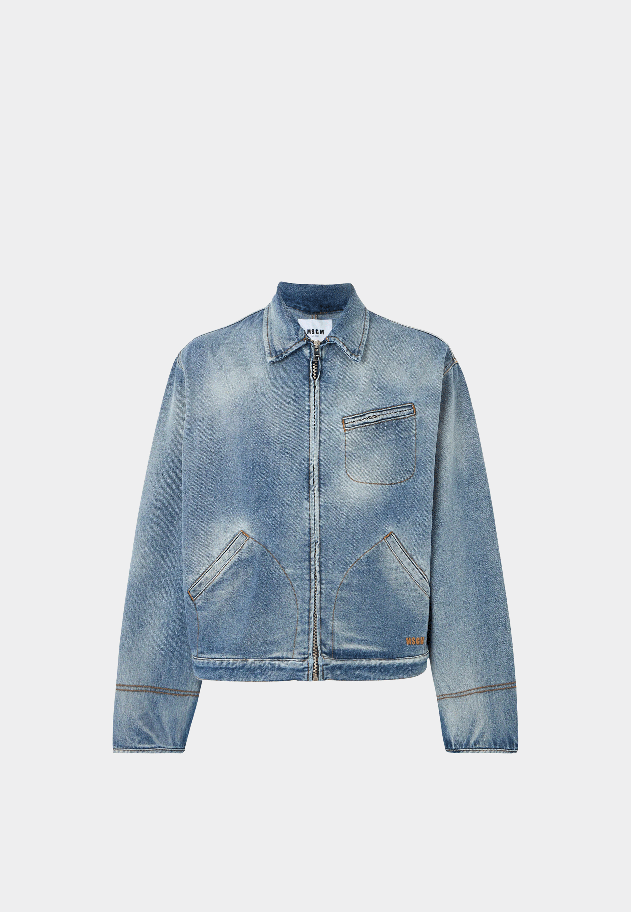 MSGM Giubbino 3 Frontal Zip Pocket Jacket Denim Wash