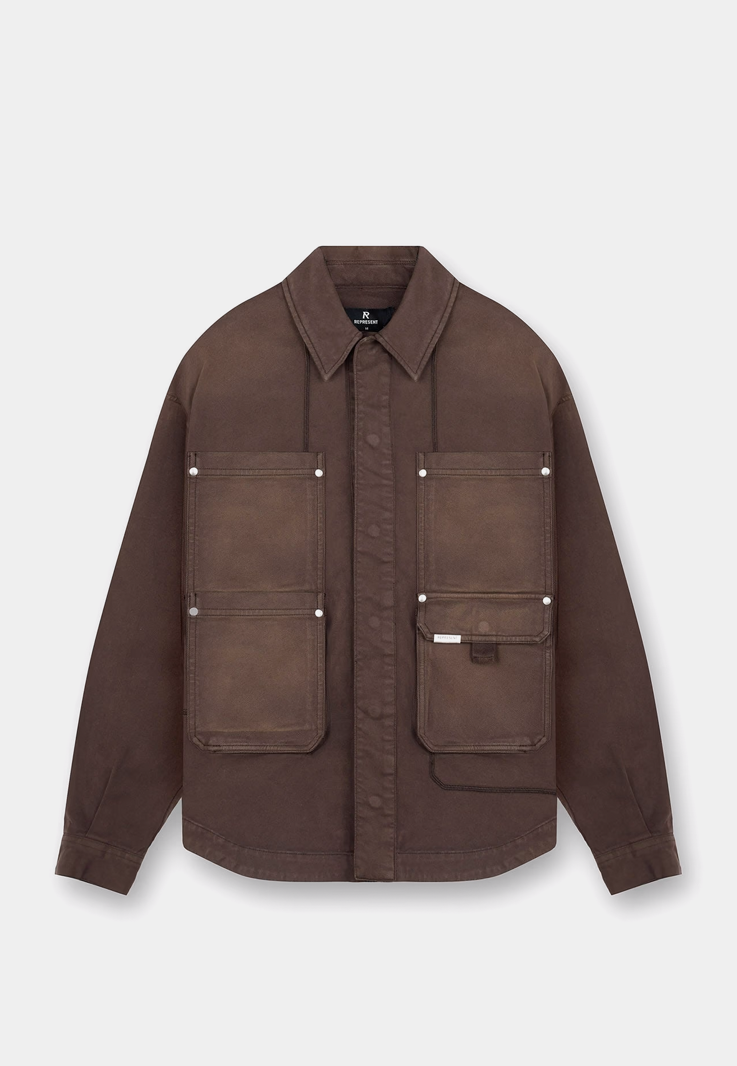The Represent Workshop Shirt is a go-to for effortless everyday wear, offering both practicality and style. It features concealed popper closures to the front, with a patch and flap pocket to each side. It has a yoke to the back for shaping, with cover stitch detailing. The shirt is finished with popper adjusters to the cuffs and a Represent metal bar logo to the pocket.